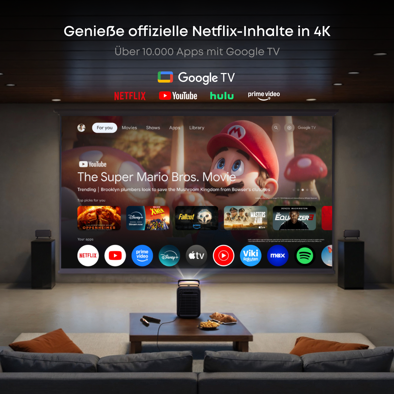 - Brillante Helligkeit und atemberaubende 4K-Klarheit: Mit einem einzigartigen Triple-Laser-Optiksystem bringt der Projektor 3.500 ANSI-Lumen und 110% Rec. 2020 Farbtreue – ISF- und TUV-zertifiziert, plus Dolby Vision-Unterstützung für das ultimative Kinoerlebnis.